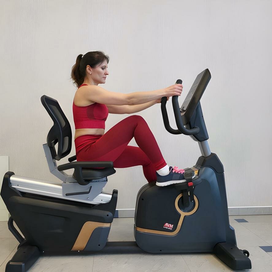 10 цен на Профессиональный горизонтальный велотренажёр AVM А-9400R / Черный / Для дома и зала / До 180 кг / 32 уровня нагрузки