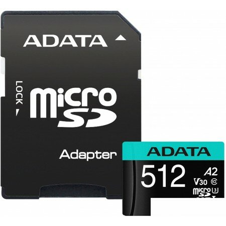 Карта памяти microSDHC UHS-I U3 A-Data Premier Pro 512 ГБ, 100 МБ/с, Class 10, AUSDX512GUI3V30SA2-RA1, 1 шт., переходник SD 6 220 ₽