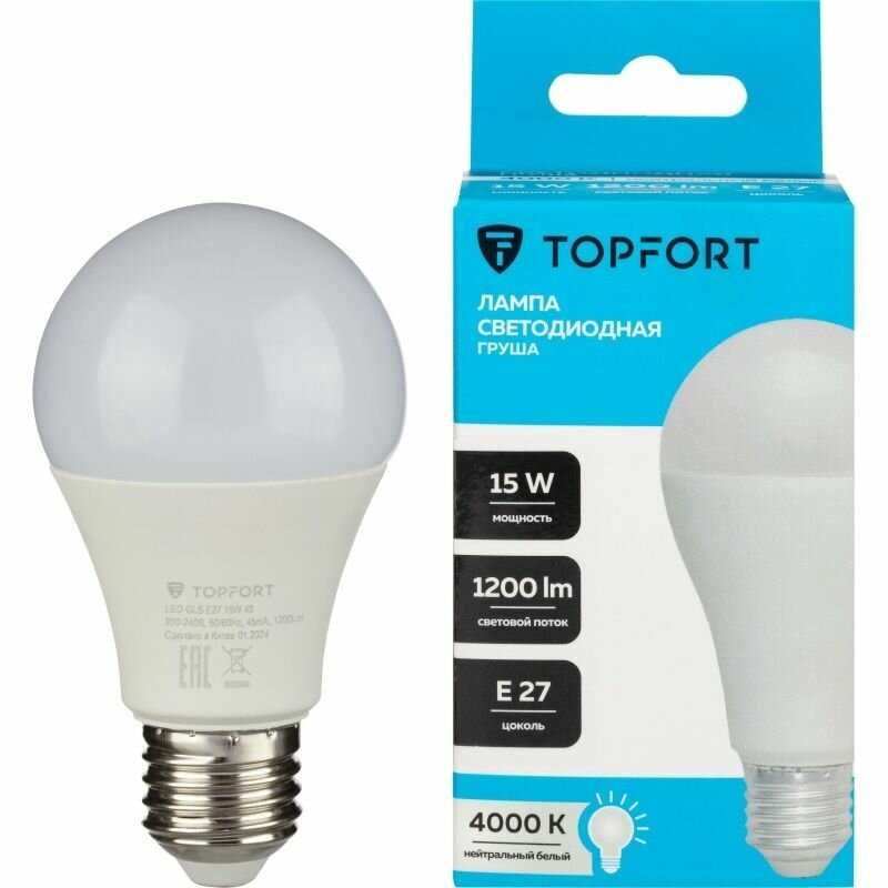 Лампа светодиодная Topfort E27 15 W 4000 K, груша информация: