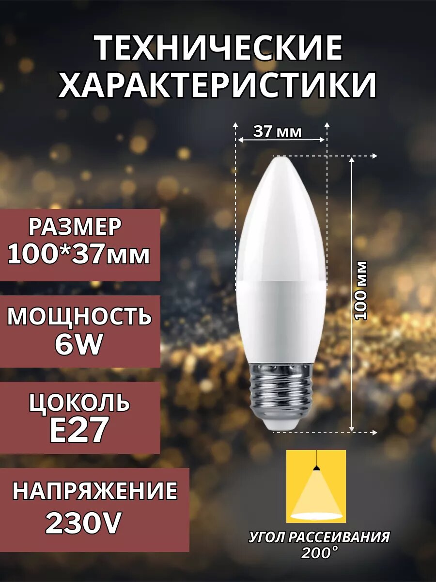 Лампа светодиодная FERON LB-1306, E27, 6W, 6400K, дневной белый свет, 5 шт информация: