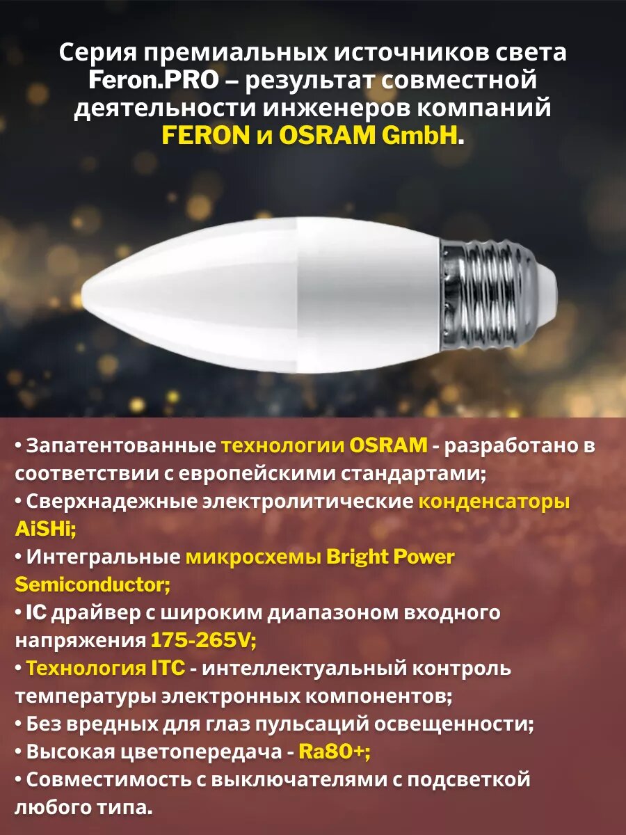 10 цен на Лампа светодиодная FERON LB-1306, E27, 6W, 6400K, дневной белый свет, 5 шт