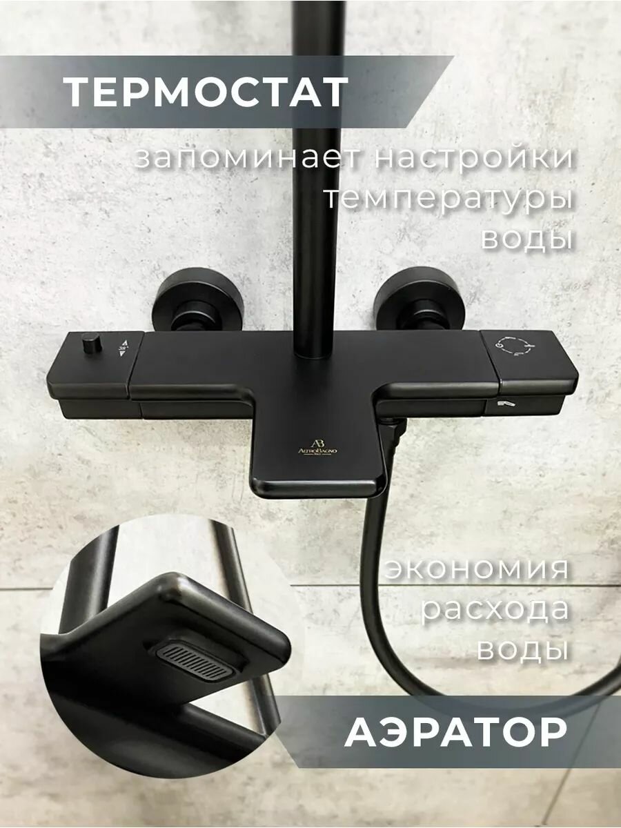 Душевая система AltroBagno, с термостатом, черный матовый, вертикальный монтаж 48 790 ₽