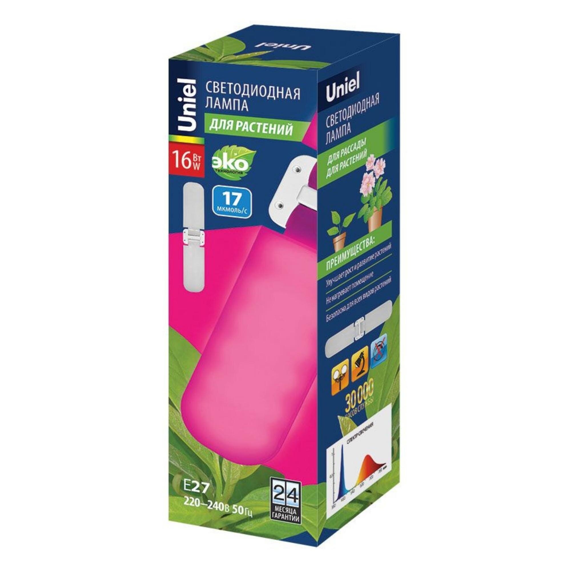 Лампа светодиодная для растений Uniel UL-00007406, E27, 16 Вт