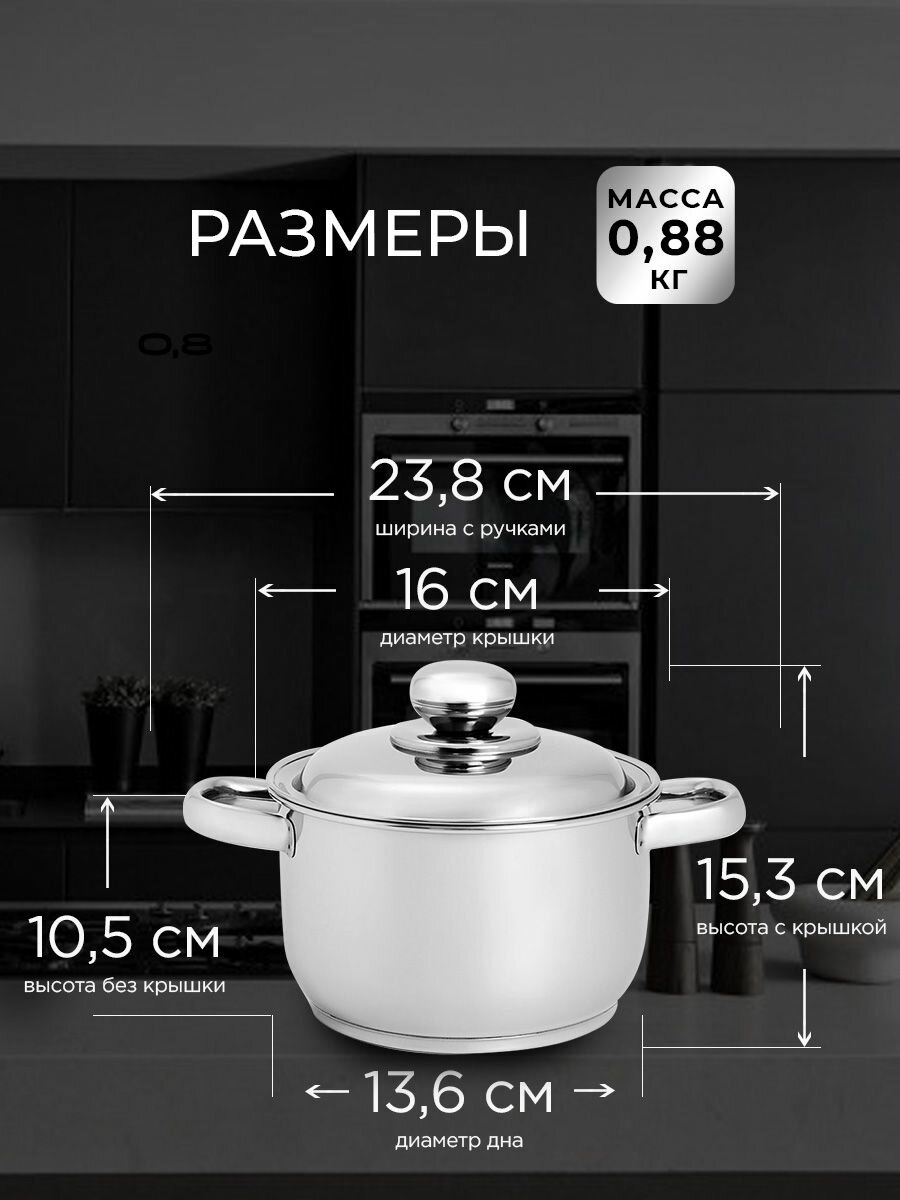 Кастрюля "Прима Блеск" 1,75 л с металлической крышкой информация: