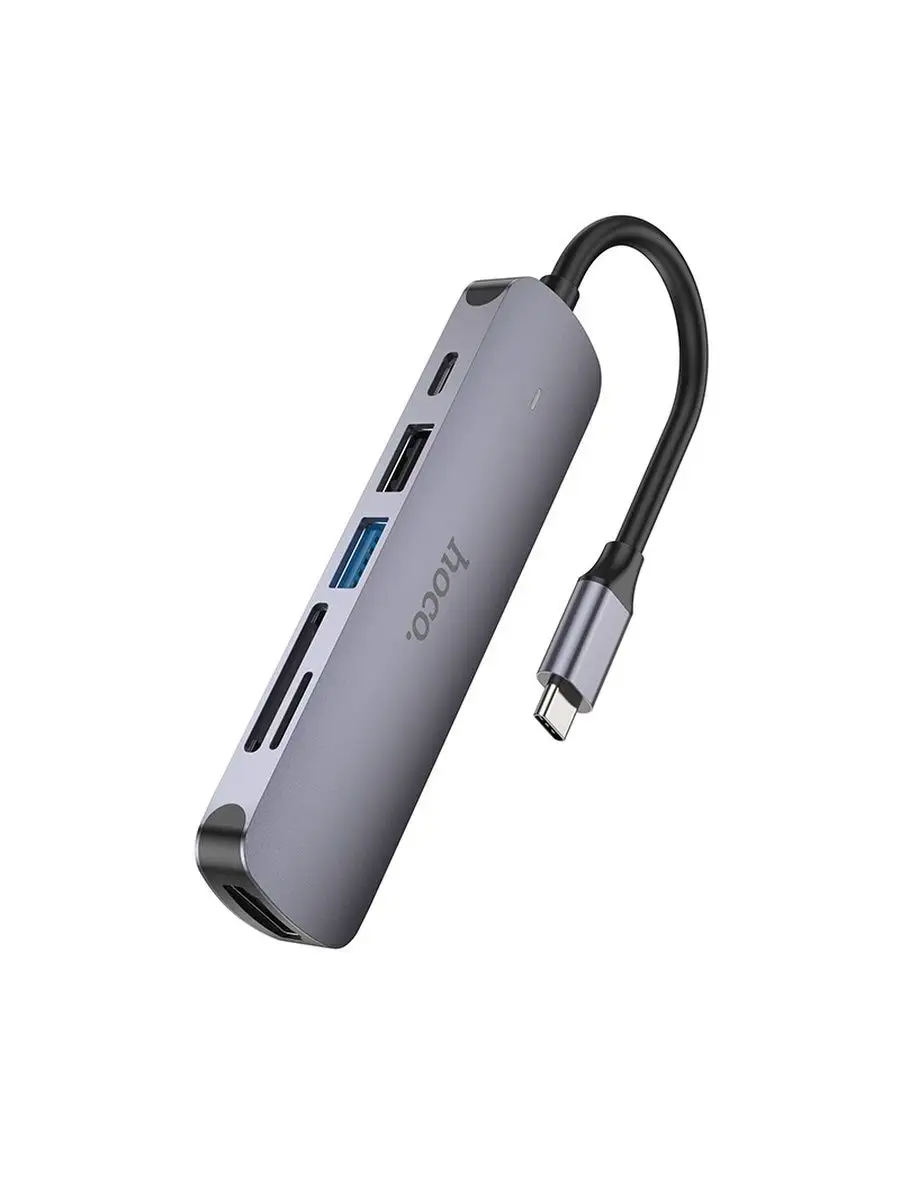 HOCO HB28/ Хаб 6 в 1/ USB 2.0, 1 USB 3.0, Type-C, Card Reader SD, Micro SD, HDMI для MacBook Apple и Windows