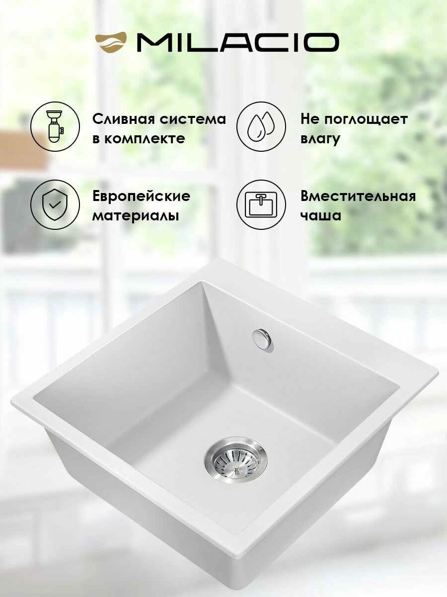 Мойка для кухни MILACIO Murcia 51 Cuarzo (MC.77022), белый