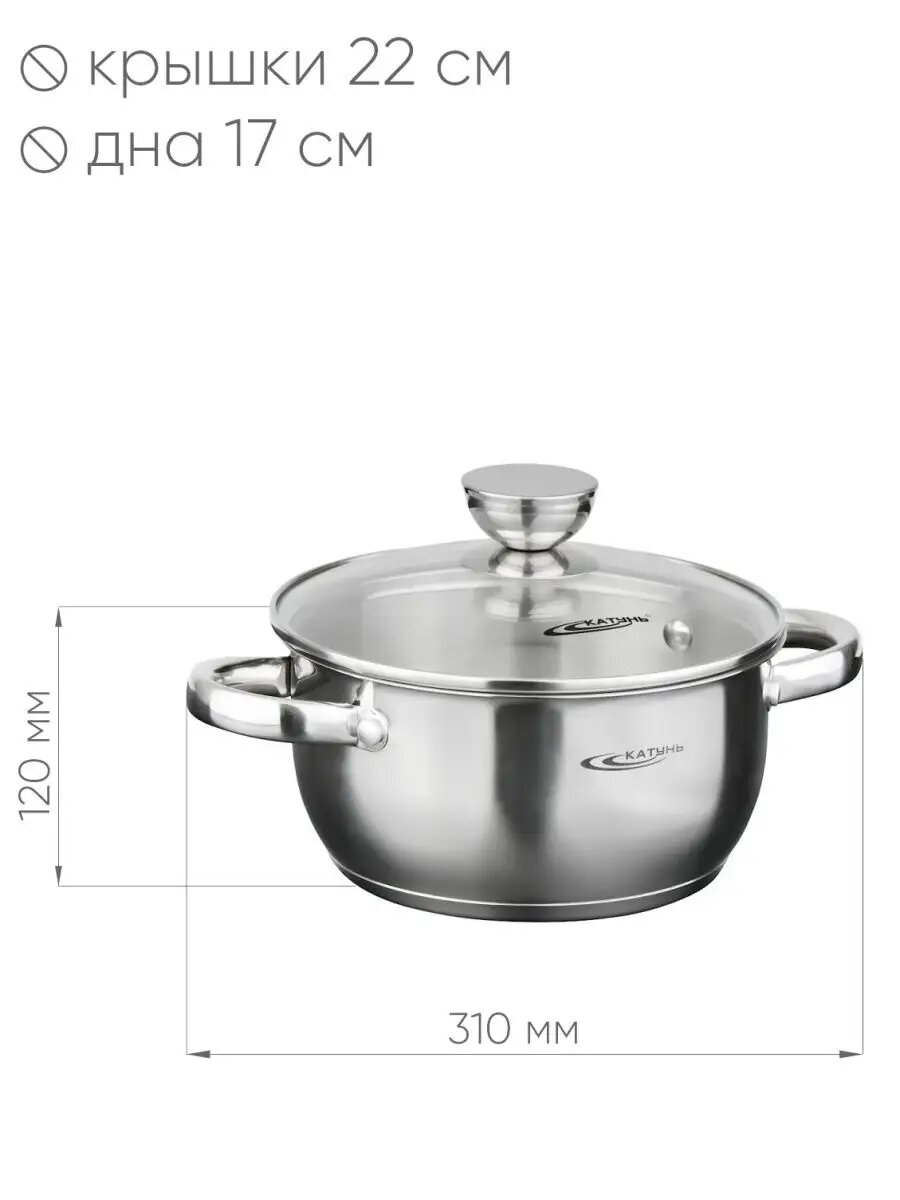 Кастрюля 5 л катунь, антея, KT05-D-24, нерж.сталь, зеркальная полировка 2 038 ₽