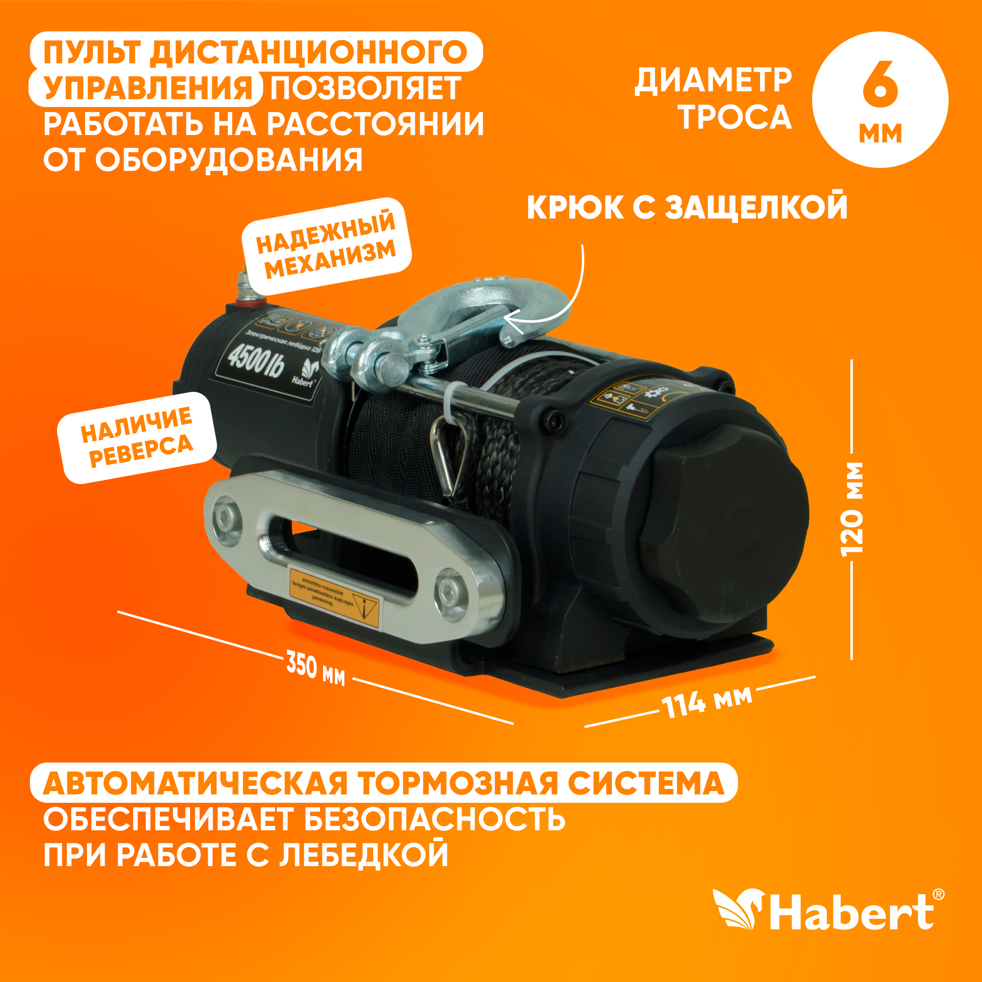 Электрическая лебедка Habert 4500LBS, синтетический трос 00-00157121