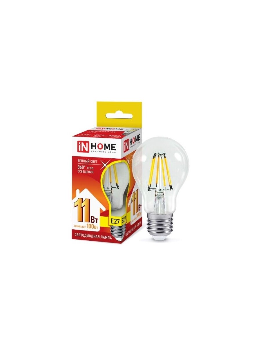 Лампа светодиодная IN HOME LED-A60-deco, 11 Вт, 230 В, Е27, 4000 К, 1160 Лм, прозрачная