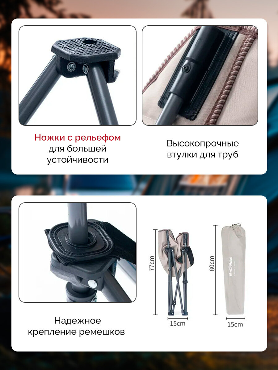 Кресло туристическое Naturehike NH20JJ022-KH, складное, хаки (серо-бежевый), до 90 кг информация:
