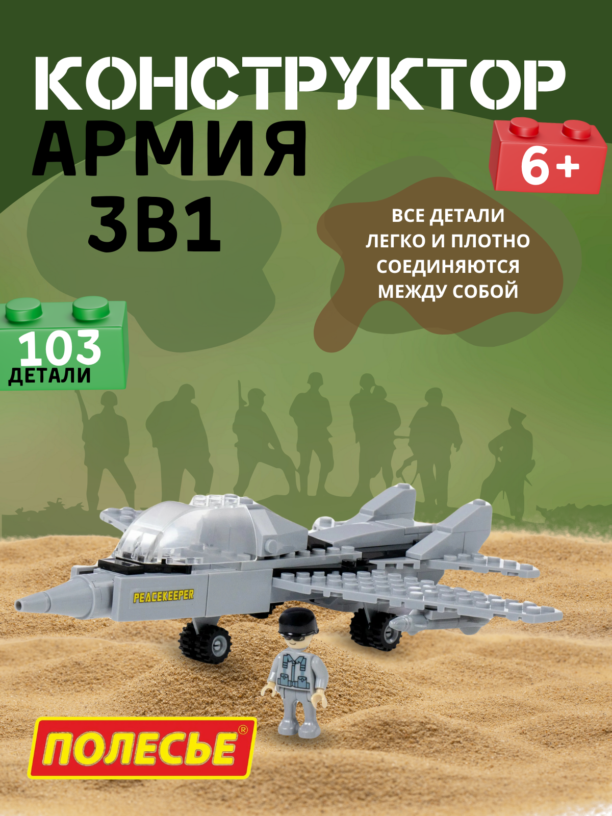 Конструктор полесье Классик Армия-8, 3 в1, 103 элемента (в коробке) П-81254