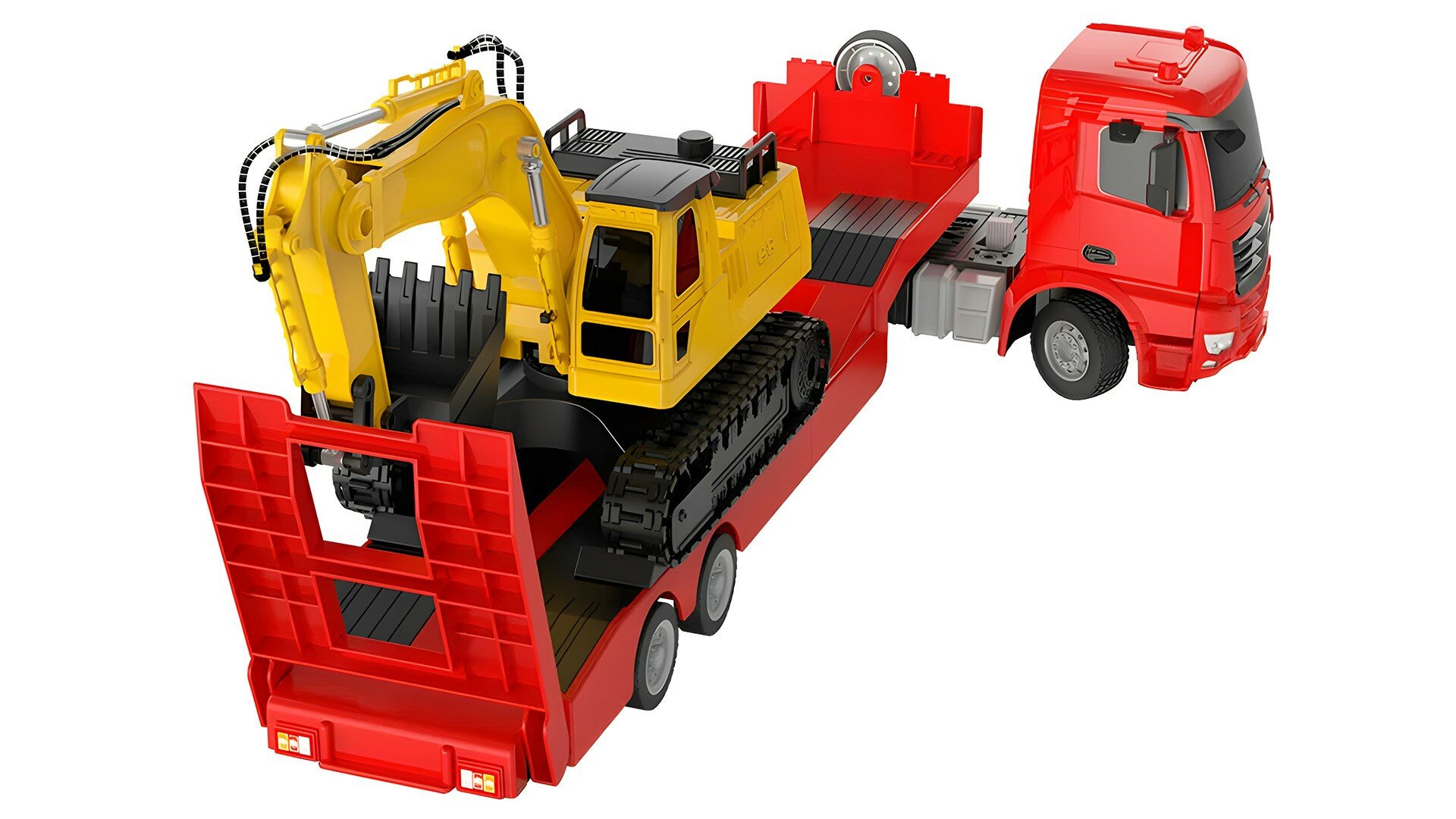 10 цен на Радиоуправляемый трейлер Arocs с экскаватором масштаб 1:26 2.4G