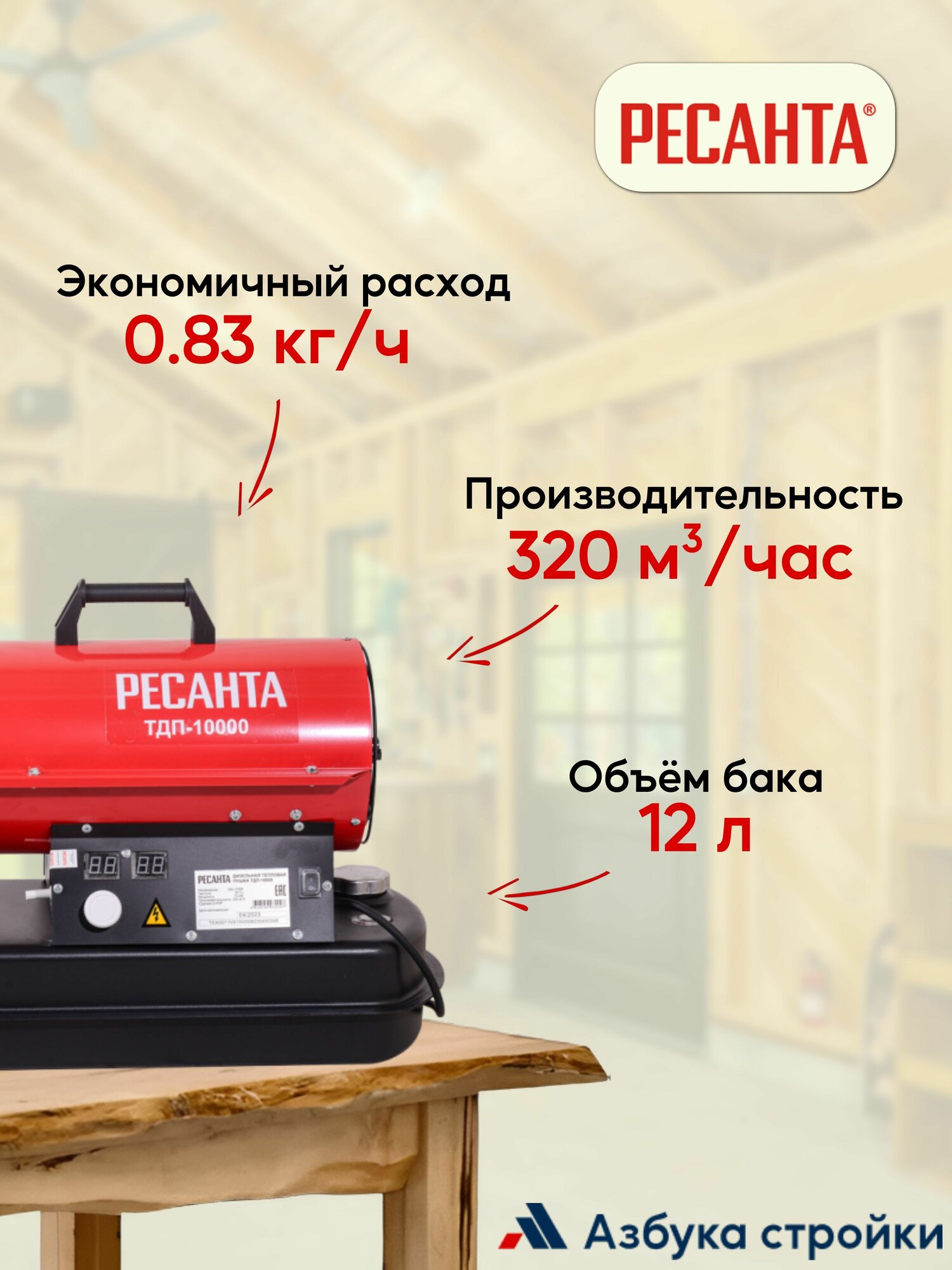 10 цен на Тепловая дизельная пушка ТДП-10000 Ресанта, мощность 10 кВт, 320 м3/ч