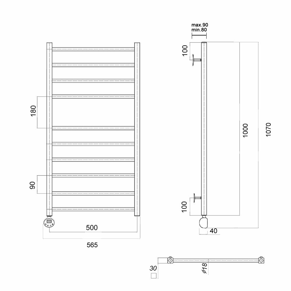 Полотенцесушитель электрический Маргроид В10 30х80, таймер, черный матовый
