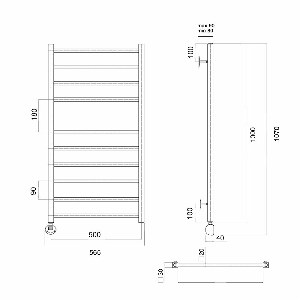 Полотенцесушитель электрический Маргроид В10 30х80, таймер, черный матовый