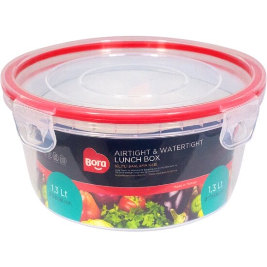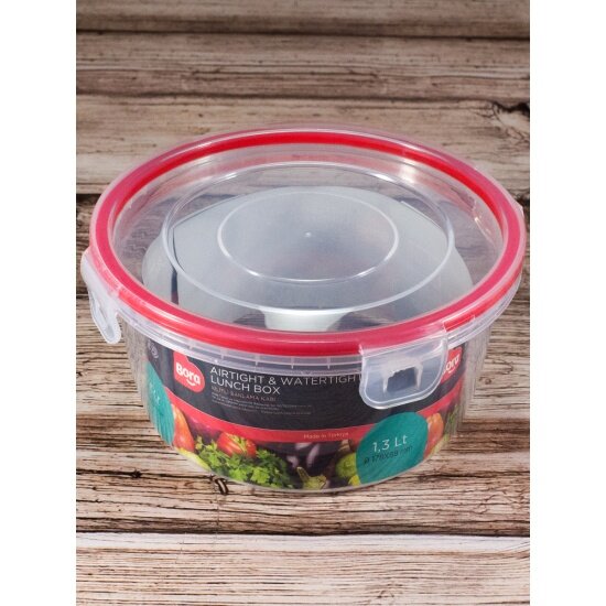 Отзывы на Контейнер круглый Bora крышка на защелках, красная полоса, пластик 88х178 мм 1,3 л