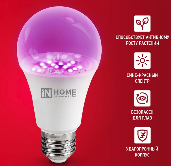 Отзывы на Фитолампа LED-A60-ФИТО IN HOME, 15W, E27, красно-синее свечение