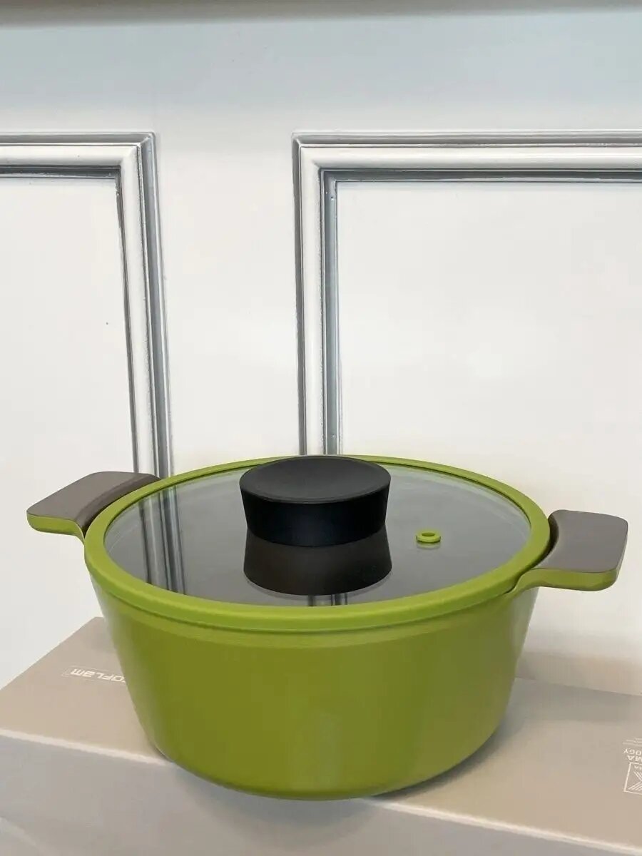 Кастрюля алюминиевая с керамическим покрытием и стеклянной крышкой, 3.7 л, 24 см, зеленый, серия Vulcan, Neoflam, GL49954