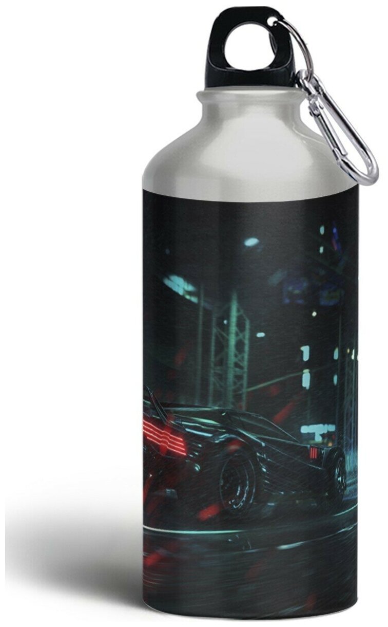 Бутылка спортивная, туристическая фляга, 500мл с карабином Машина киберпанк неон - 385 информация: