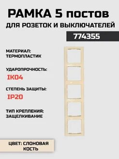 Рамка для розеток и выключателей пятиместная слоновая кость 774355 информация: