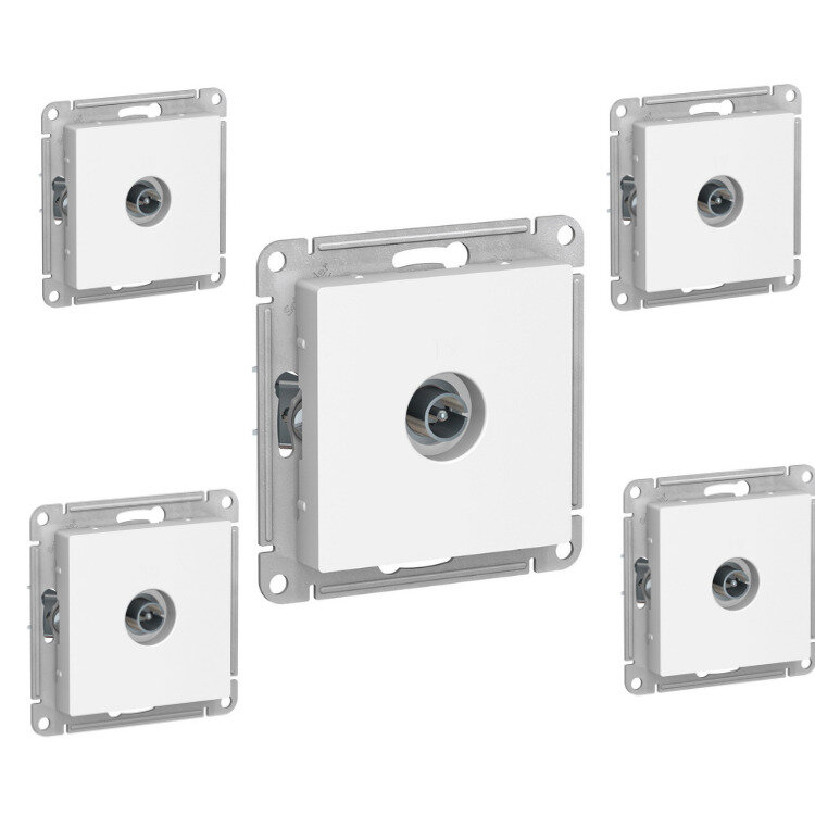 Розетка тв Systeme Electric Atlasdesign антенная, одиночная, комплект 5 шт, белая, ATN000193/5 информация: