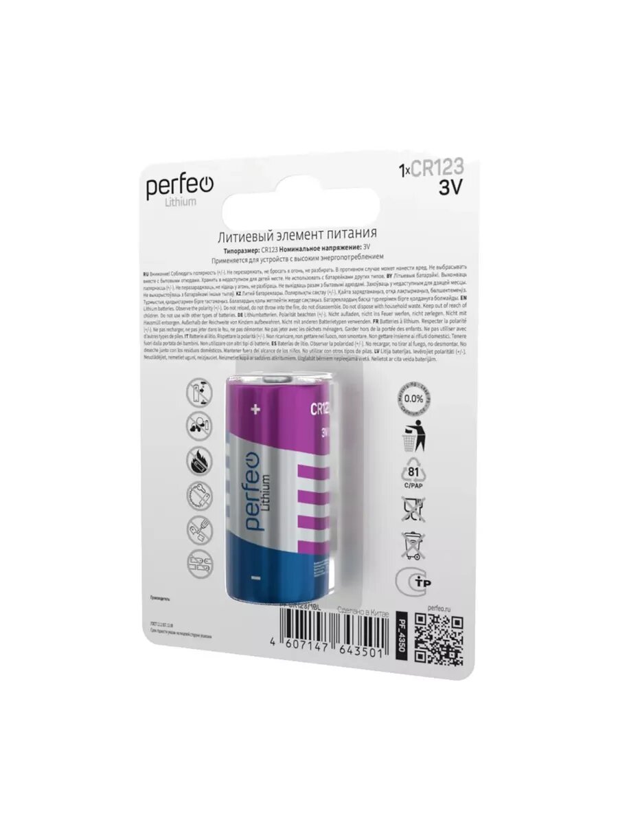 Батарейка литиевая PERFEO CR123/1BL LITHIUM 1 шт.