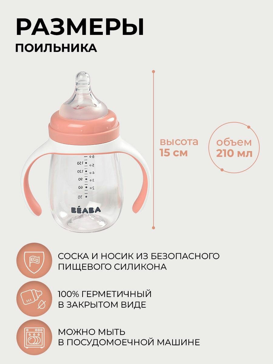 10 цен на BEABA поильник детский 210 мл. с двумя насадками в комплекте, поильник непроливайка с соской и силиконовым носиком, бутылочка для кормления