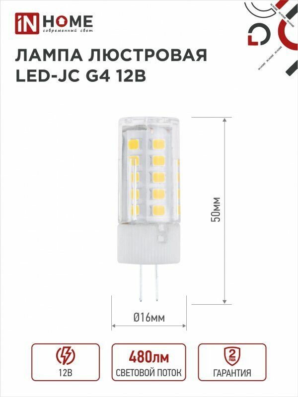 (12 шт.) Светодиодная лампочка IN HOME LED-JC 5Вт 12В G4 4000К 480Лм 1 628 ₽