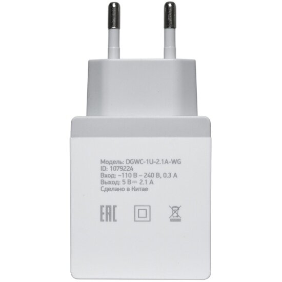 Сетевое зарядное устройство Digma DGWC-1U-2.1A-WG 2.1A универсальное белый информация: