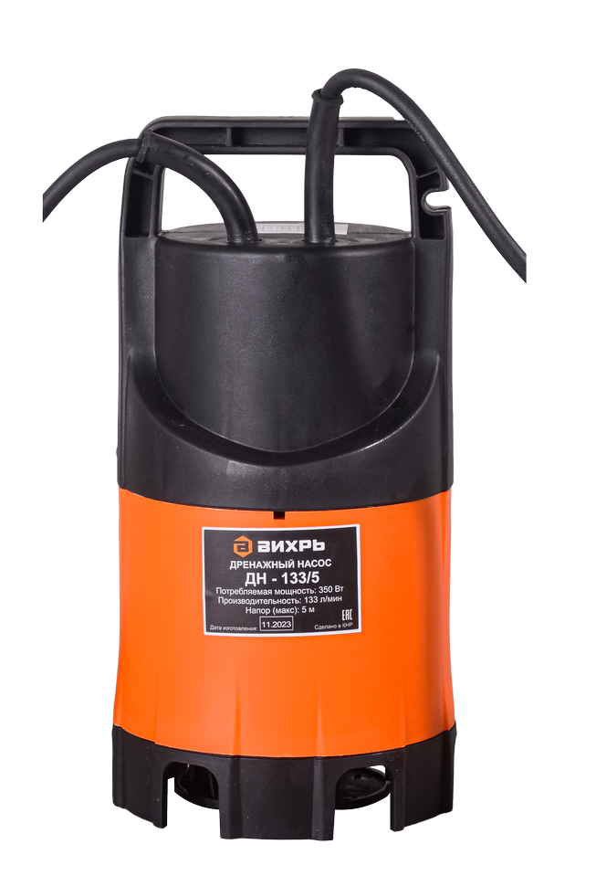 Отзывы на Дренажный насос Вихрь ДН-133/5, 350 Вт, макс. напор – 5 м, 133 л/мин, для грязной воды, диаметр частиц – 35 мм