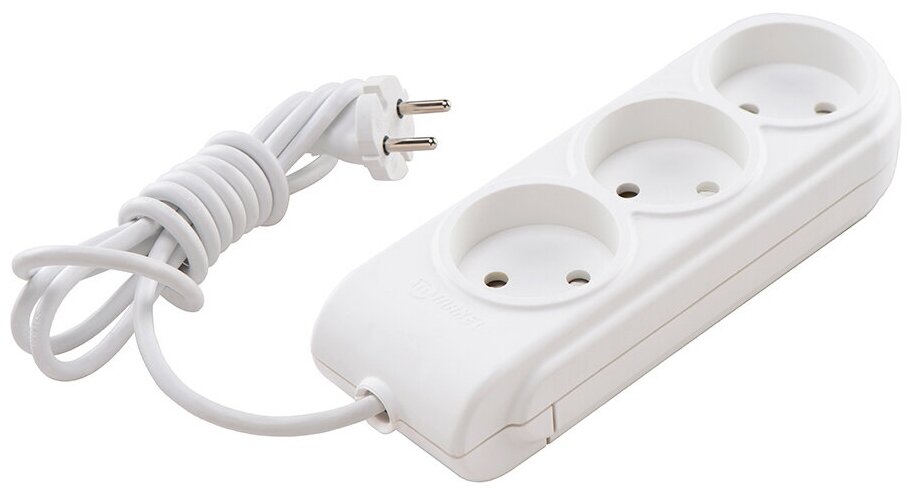 Удлинитель бытовой (N3010061) без заземления 5 м 10 А 250 В 2,2 кВт 3 розетки ПВС 2х0,75 мм2 IP20 с вилкой белая