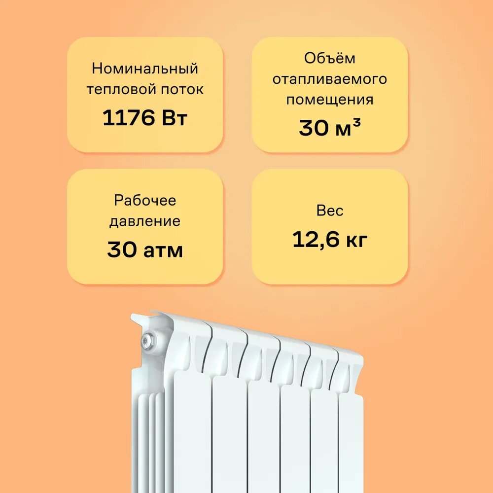 Радиатор биметаллический RIFAR MONOLIT 500 6 секций, цвет белый информация: