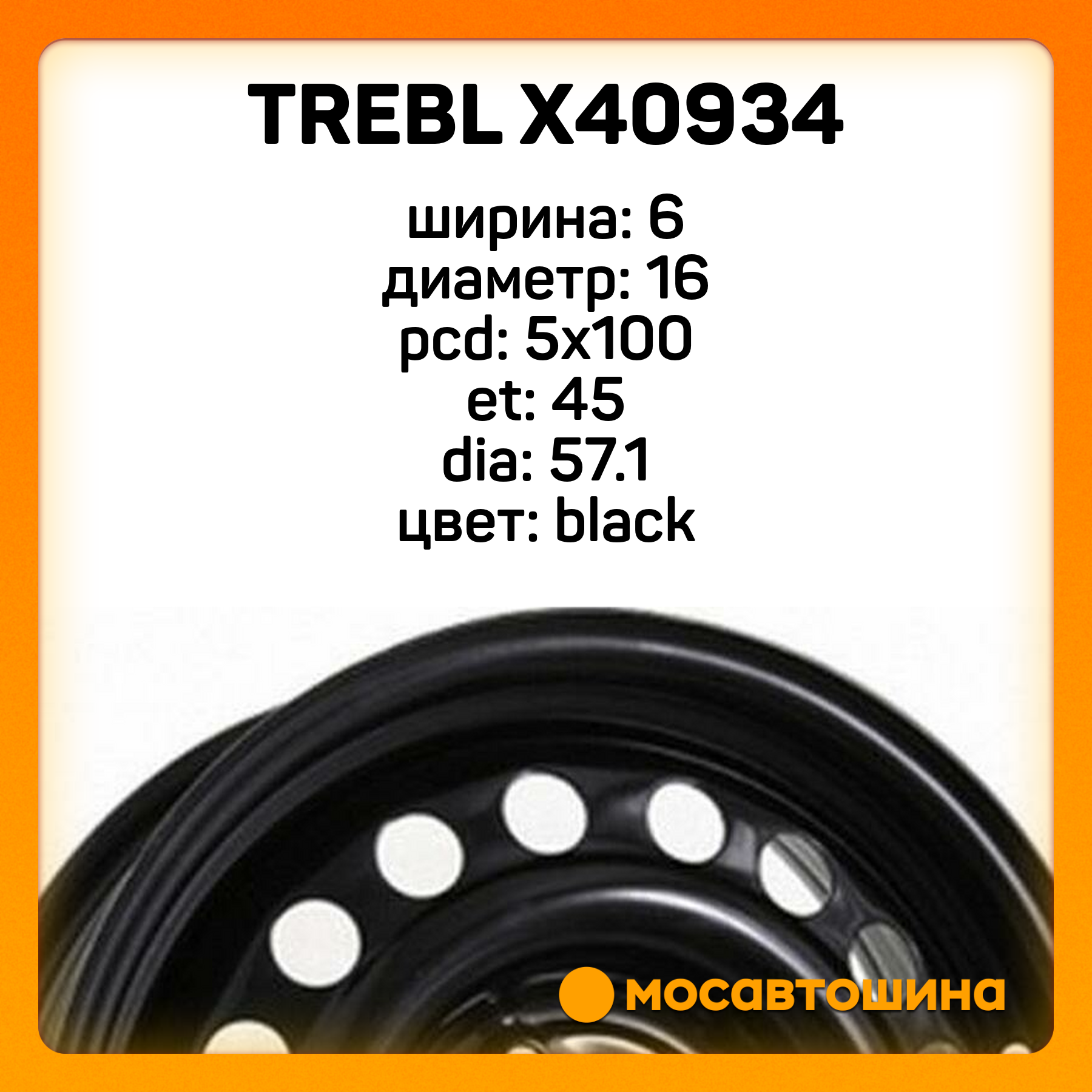 TREBL 9301557 TREBL X40934 16 / 6.0J PCD 5x100.00 ET 45.00 ЦО 57.10 Стальной / Черный