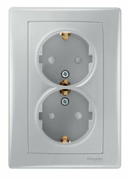 Розетка двухместная Schneider Electric SEDNA, скрытый монтаж, с заземлением, со шторками, алюминий, SDN3000760