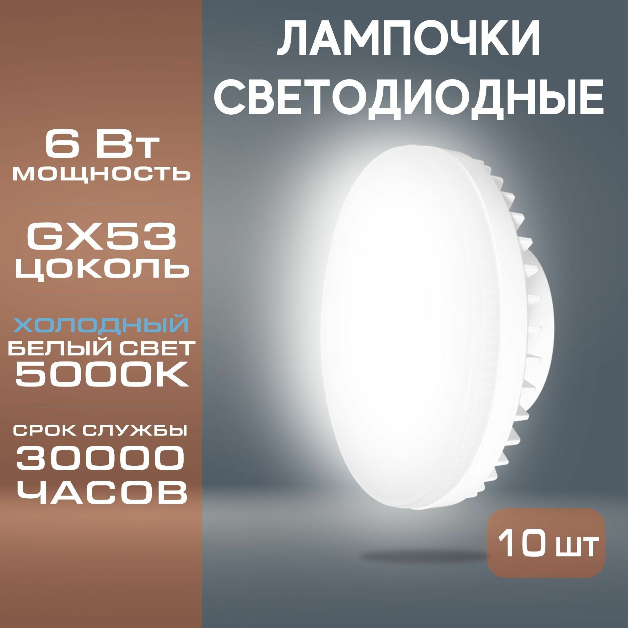 Набор из 10 светодиодных ламп Jazzway PLED- ECO-GX53 6w 5000K информация: