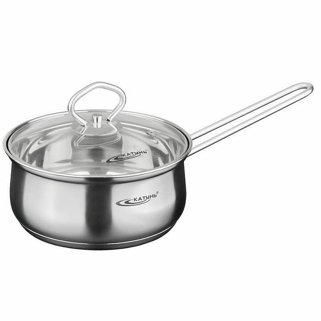 Ковш Катунь Лира 1,6л 16см стекл.крышка, нерж.сталь, индукция