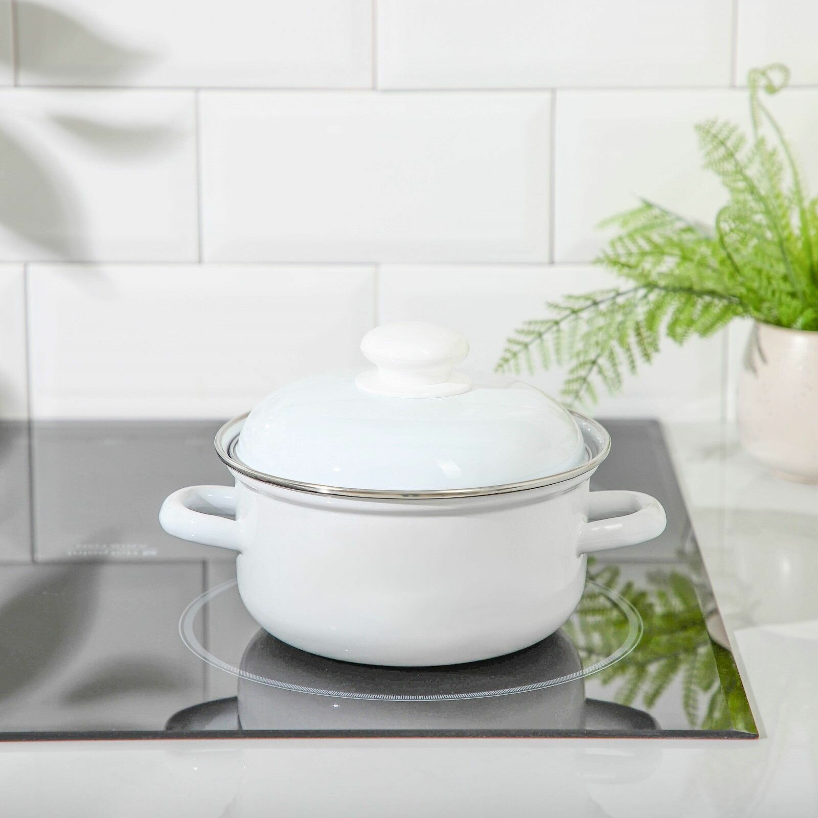 Кастрюля цилиндрическая, 1,5 л, d=16 см, эмалированная крышка, индукция, цвет белый (1 шт.)