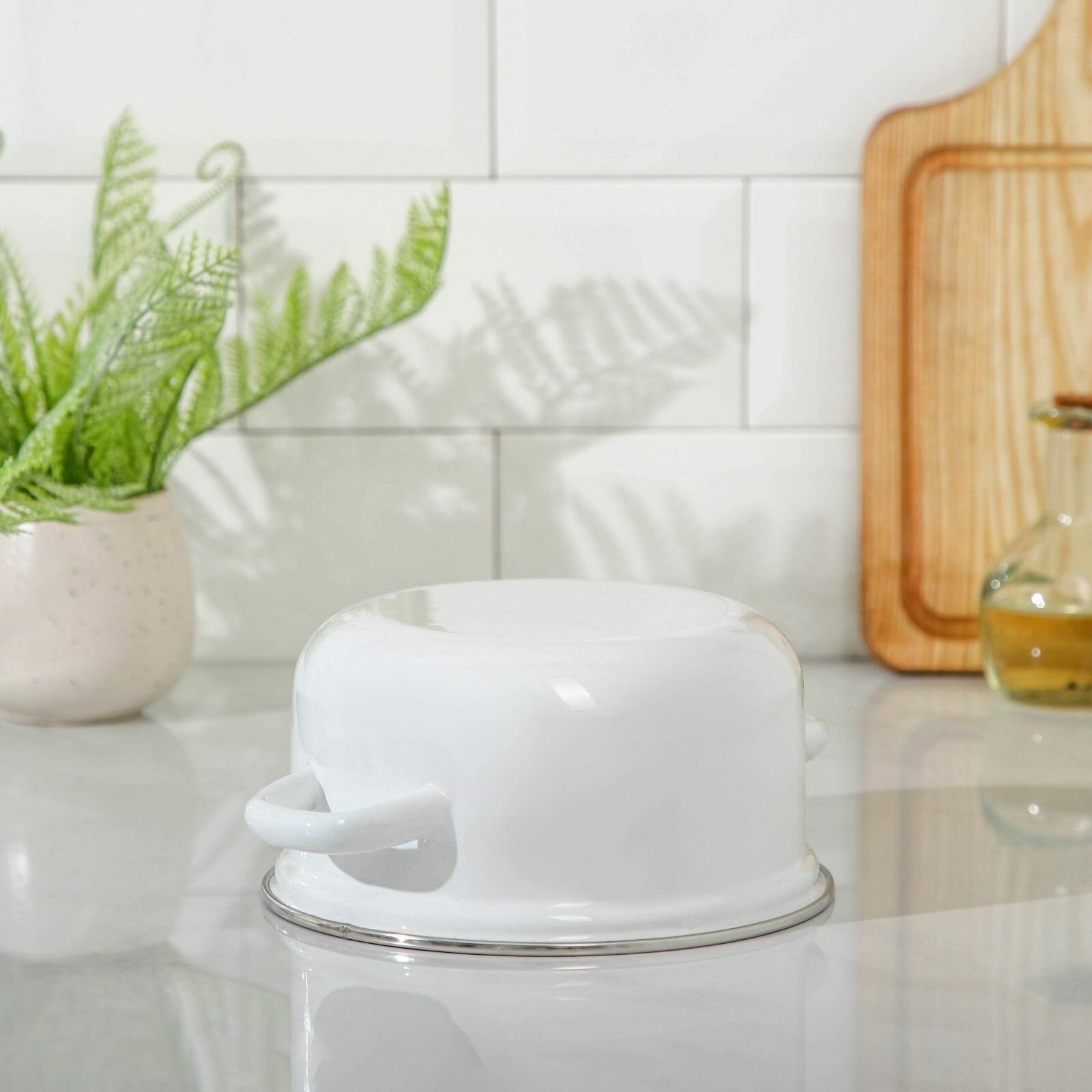 Кастрюля цилиндрическая, 1,5 л, d=16 см, h=9,5 см, эмалированная крышка, индукция, цвет белый