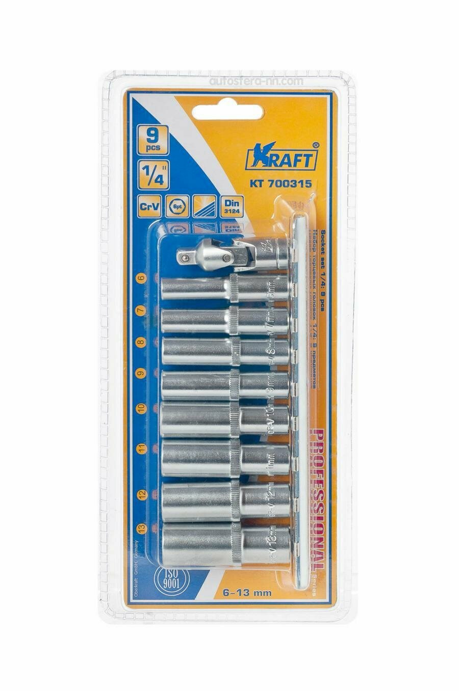 KT700315 KRAFT Набор головок 9 предметов Г6-Г13 (1/4)