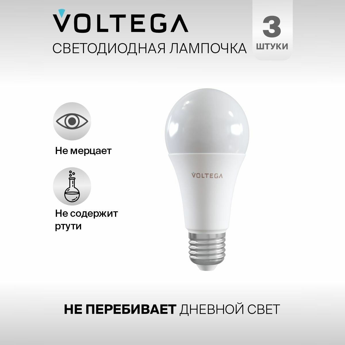 10 цен на Лампочка светодиодная E27 форма груши 15W теплый свет Voltega Simple А60 2800K упаковка 3 штуки