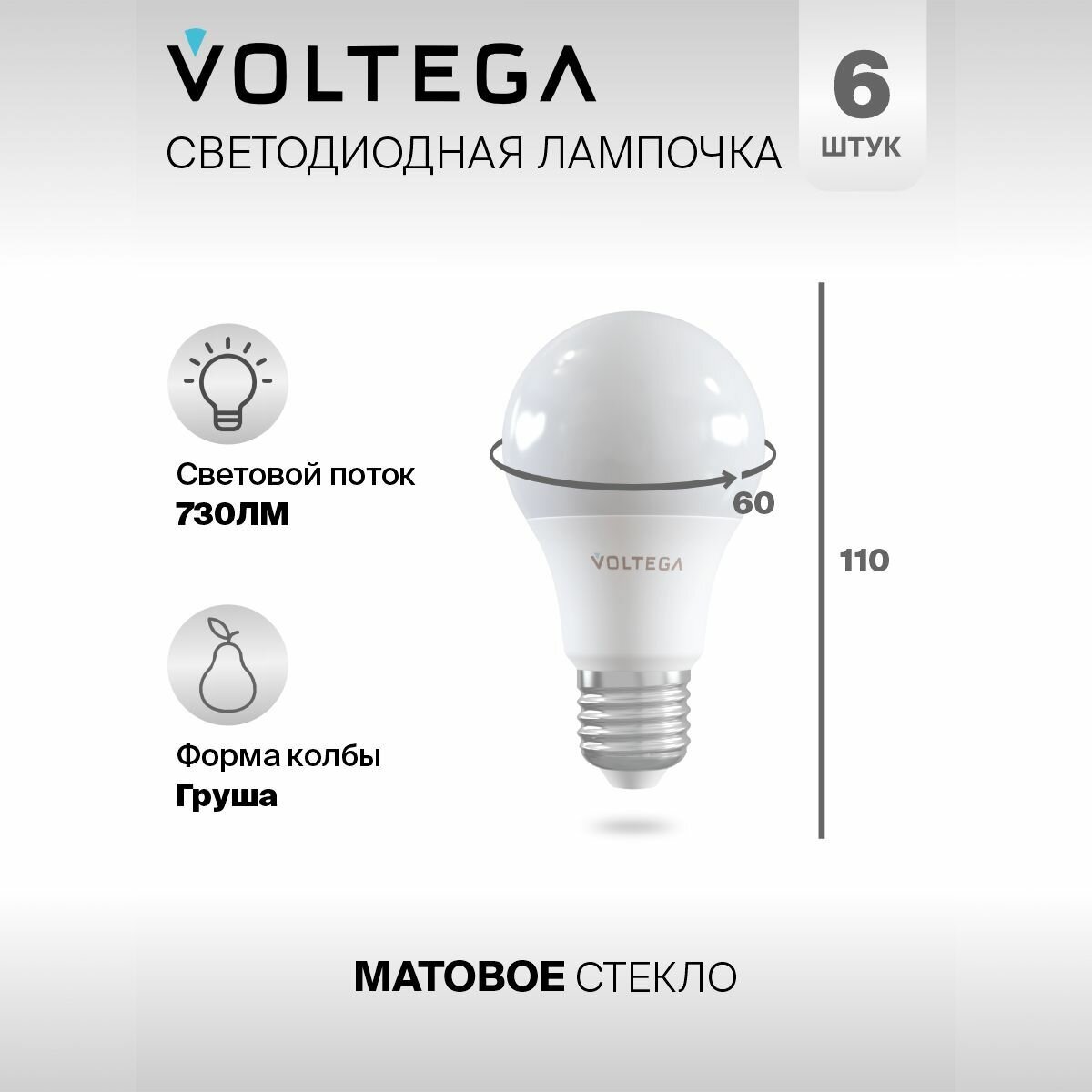 Лампочка светодиодная E27 форма груши 11W нейтральный свет Voltega Simple А60 4000K упаковка 6 штук 1 116 ₽