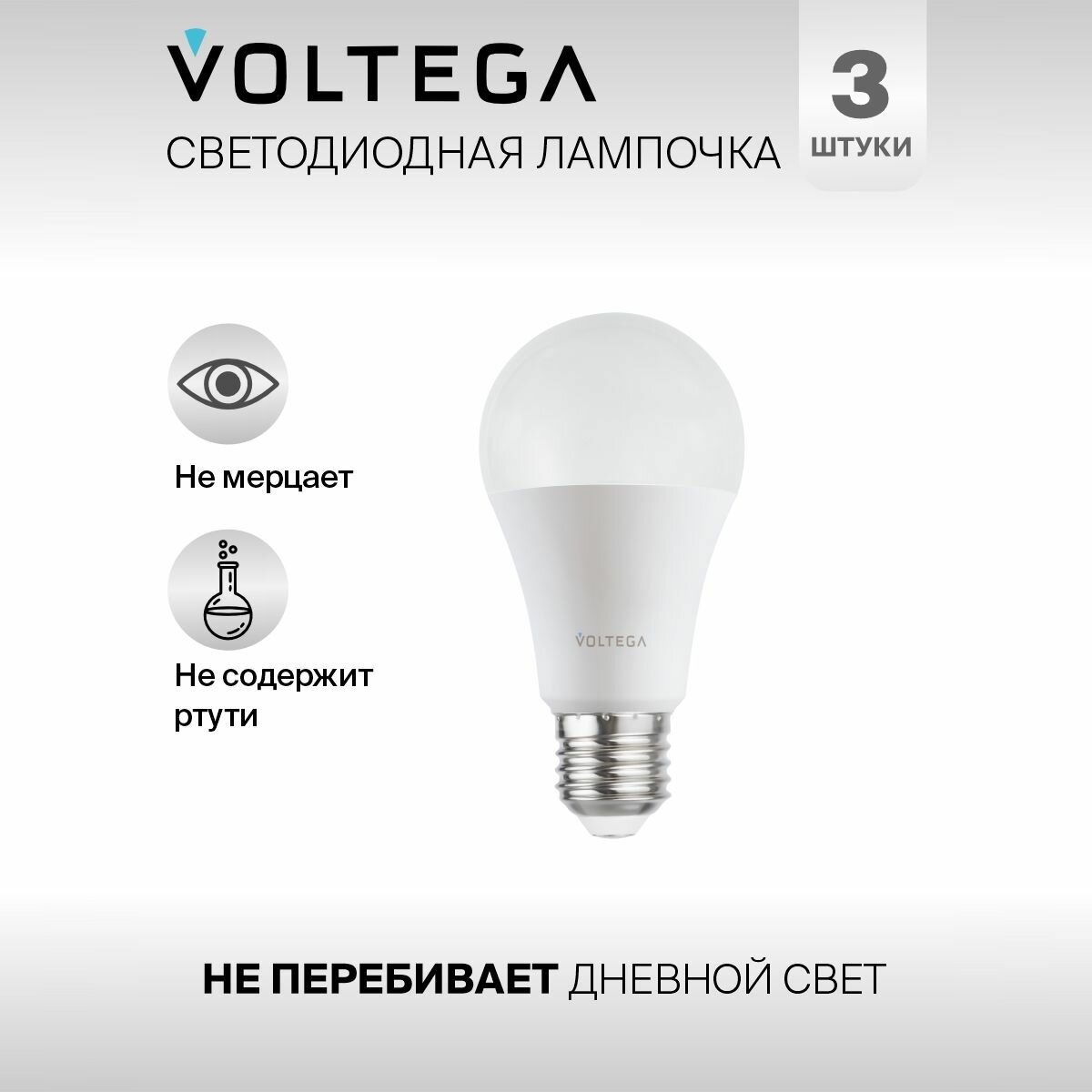 Лампочка светодиодная E27 форма груши 15W теплый свет Voltega Simple А60 2800K упаковка 3 штуки 727 ₽