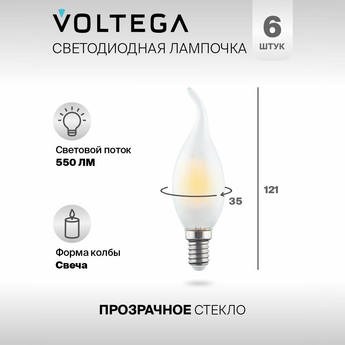 Отзывы на Лампочка светодиодная E14 форма свеча на ветру 6W теплый свет Voltega Crystal Candle wind matt 2800K упаковка 6 шт.