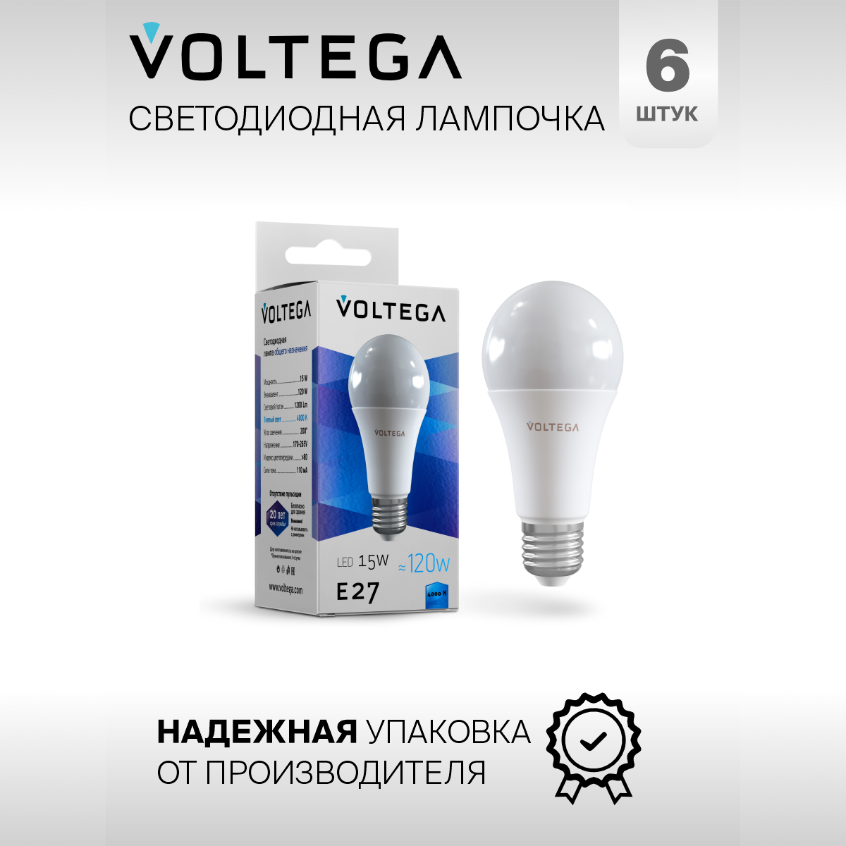 Отзывы на Лампочка светодиодная E27 форма груши 15W нейтральный свет Voltega Simple А60 4000K 1 шт. Упаковка 6 шт.