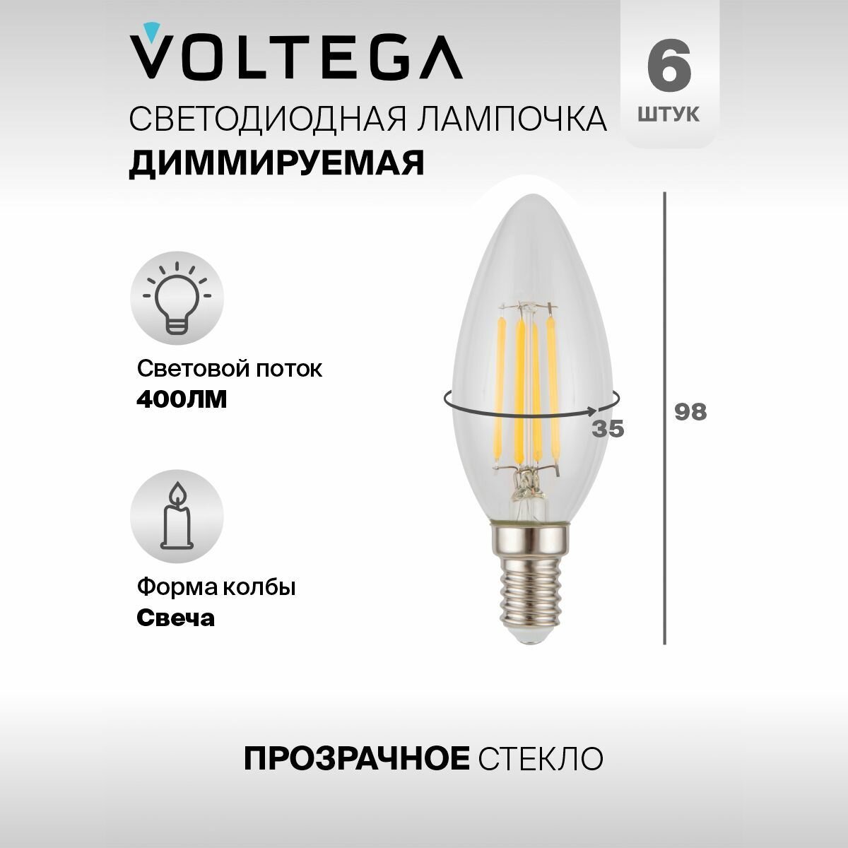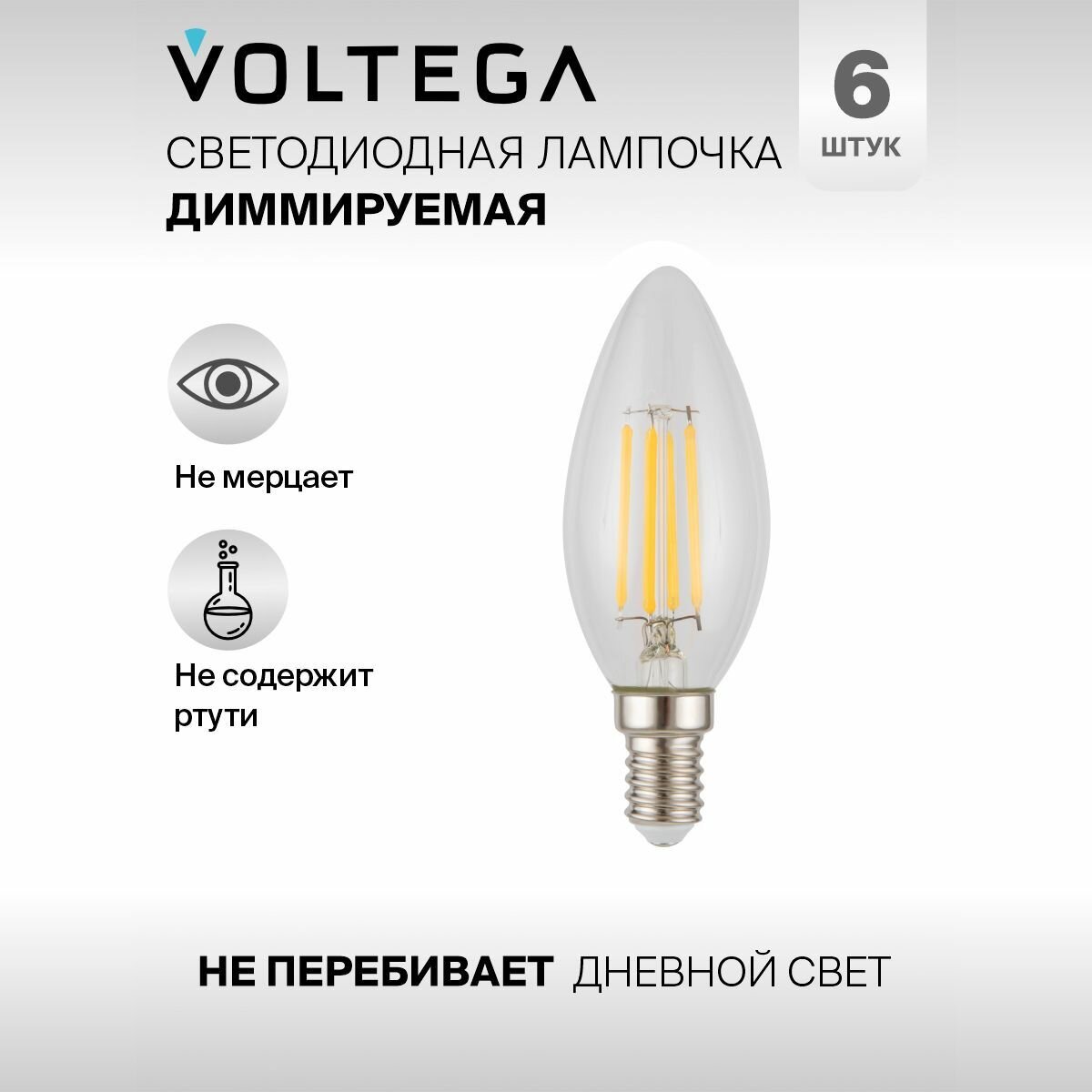 10 цен на Лампочка светодиодная E14 форма свеча 5W нейтральный свет Voltega Crystal Candle 4000K упаковка 6 штук