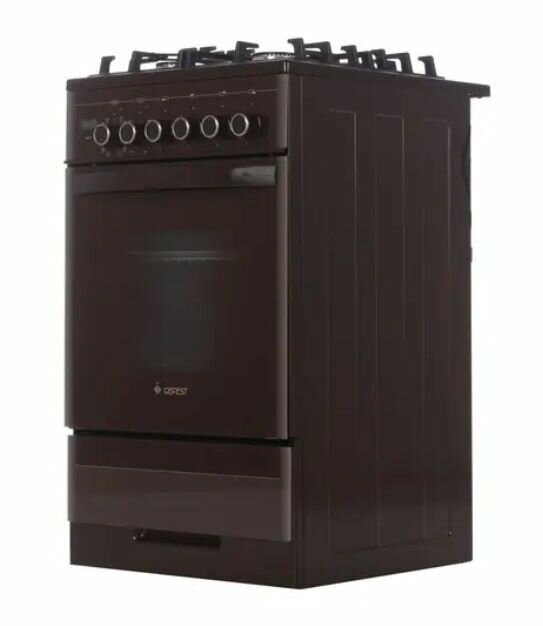 Газовая плита с электрической духовкой Gefest 5502-03 0045, объем духовки 55л, гриль, автоподжиг встроенный в поворотную ручку, темно-коричневая информация: