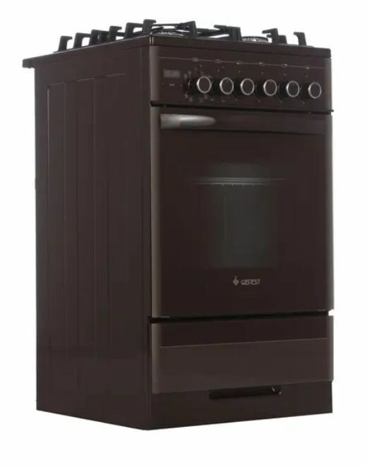 10 цен на Газовая плита с электрической духовкой Gefest 5502-03 0045, объем духовки 55л, гриль, автоподжиг встроенный в поворотную ручку, темно-коричневая