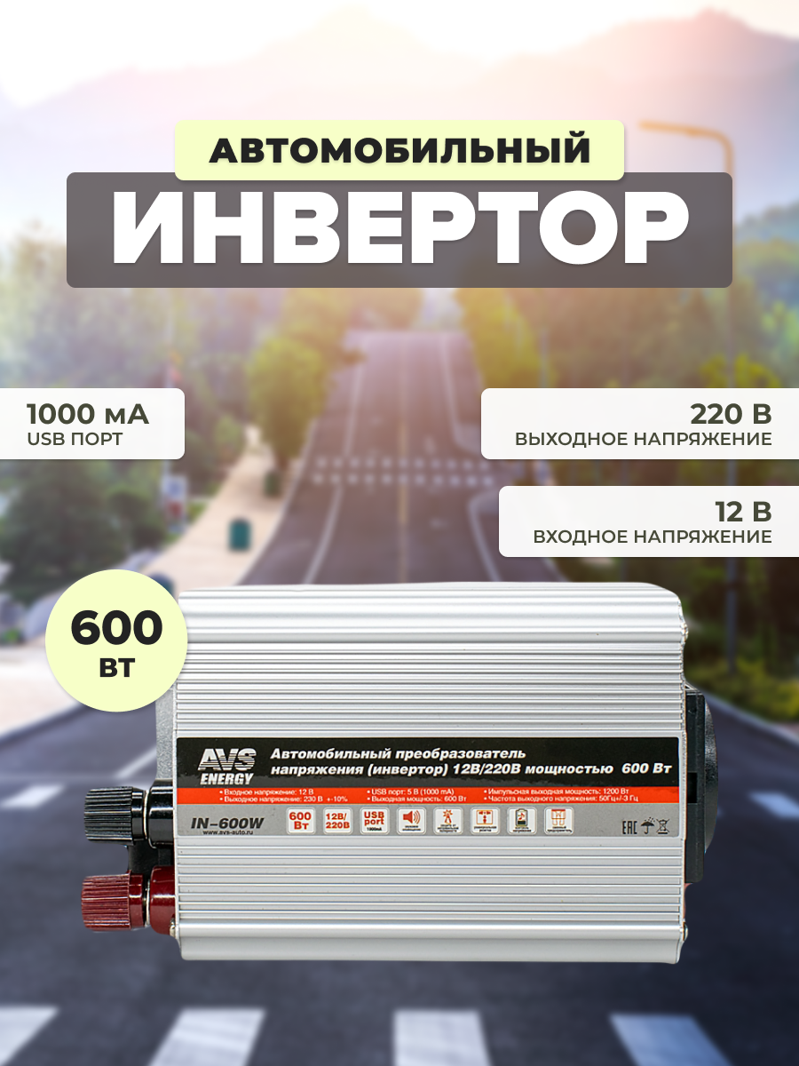 Автомобильный инвертор 12/220V AVS IN-600W 43112 информация: