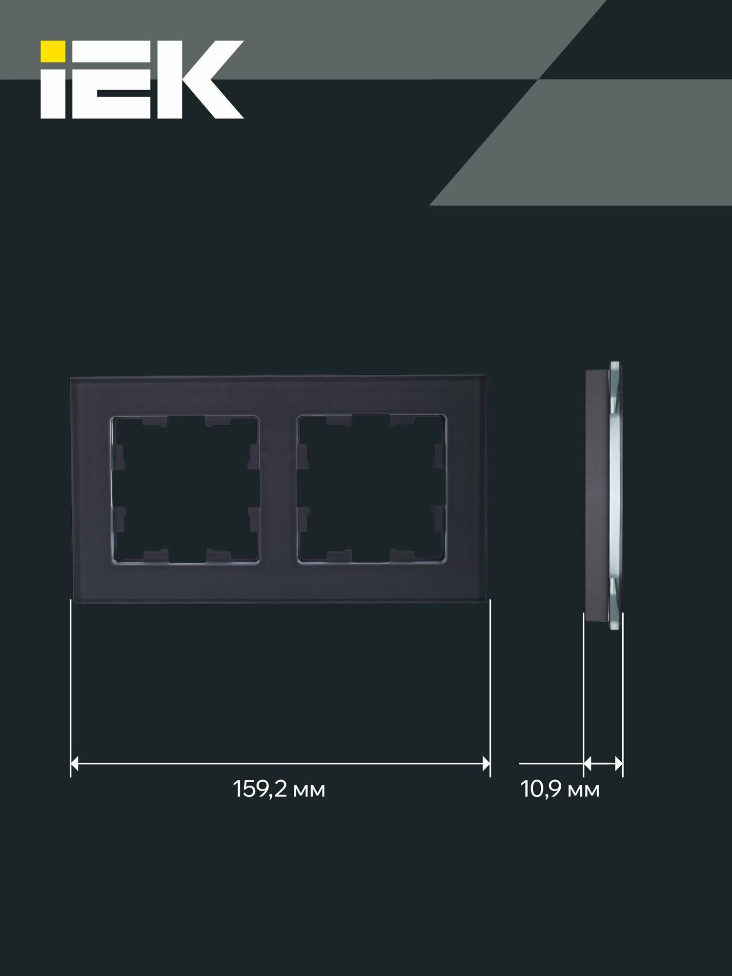 BRITE Рамка 2-мест. РУ-2-2-БрЧ стекло черн. IEK 584 ₽