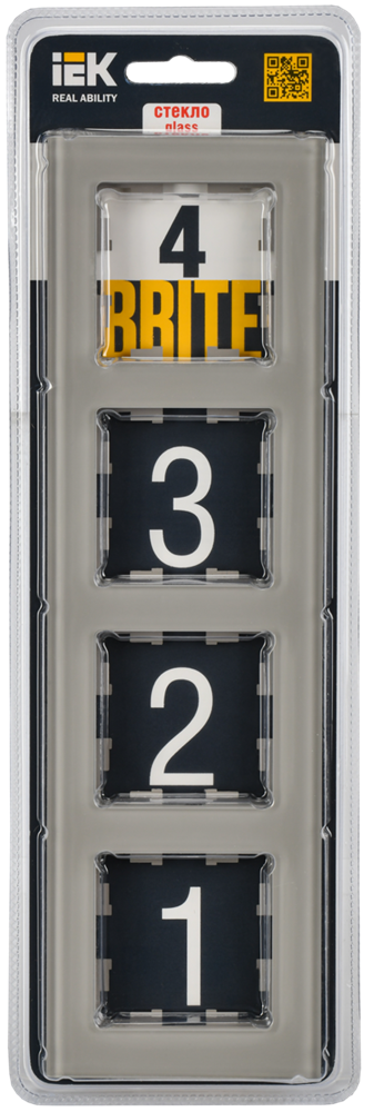 1 шт. IEK BRITE Рамка 4-мест. РУ-4-2-БрД стекло дымчатый, BR-M42-G-K30 информация: